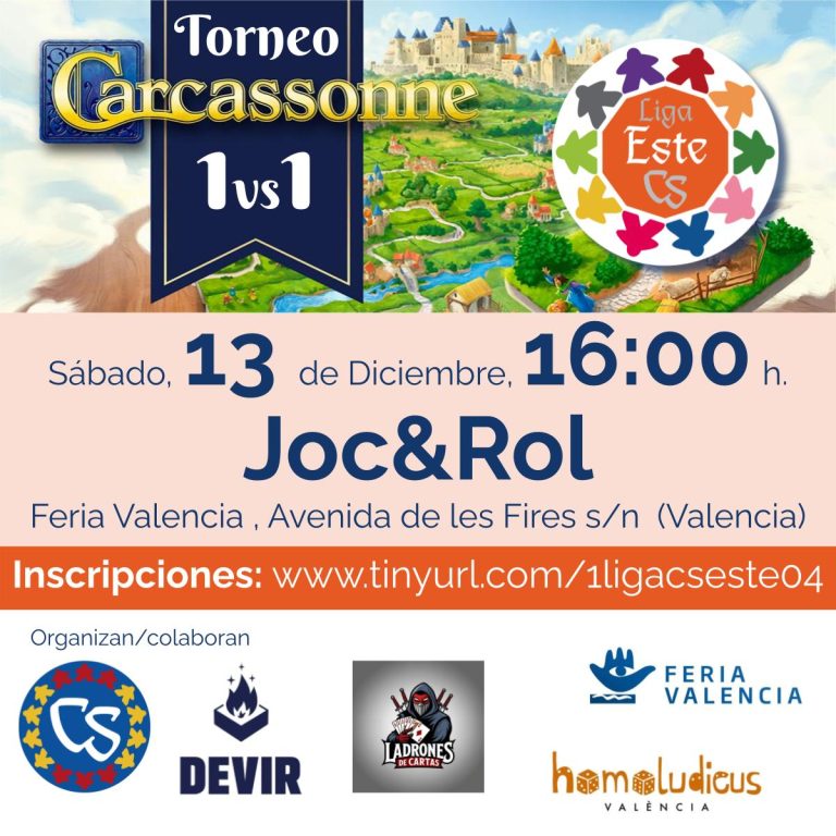 El sábado 13 de diciembre de 16 a 19horas, Ladrones de Cartas junto con Devir Iberia y la Asociación Carcassonne Spain organizan en Joc&Rol el 4º Torneo de la I