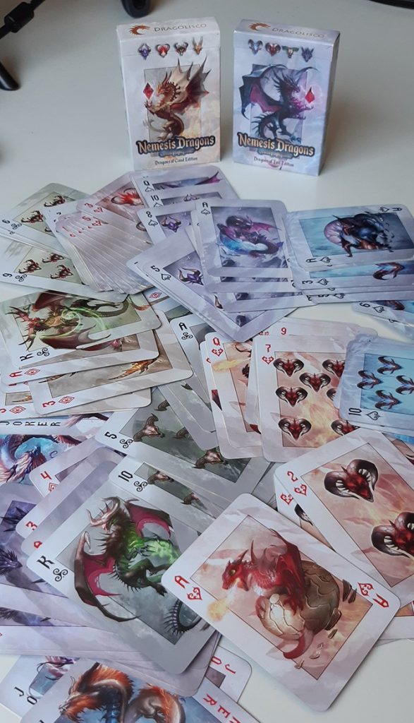 Aparte de ilustraciones de dragones en forma de prints, en mi stand también encontrarás una magnífica baraja de poker de dragones; un artbook de tapa dura de 150 páginas sobre cómo dibujar dragones y, si te interesan los juegos de mesa, estoy desarrollando un juego de dragones que lanzaré en Kickstarter y que llevaré al Salón para presentarlo en mi stand, y así puedas verlo en persona antes del lanzamiento.