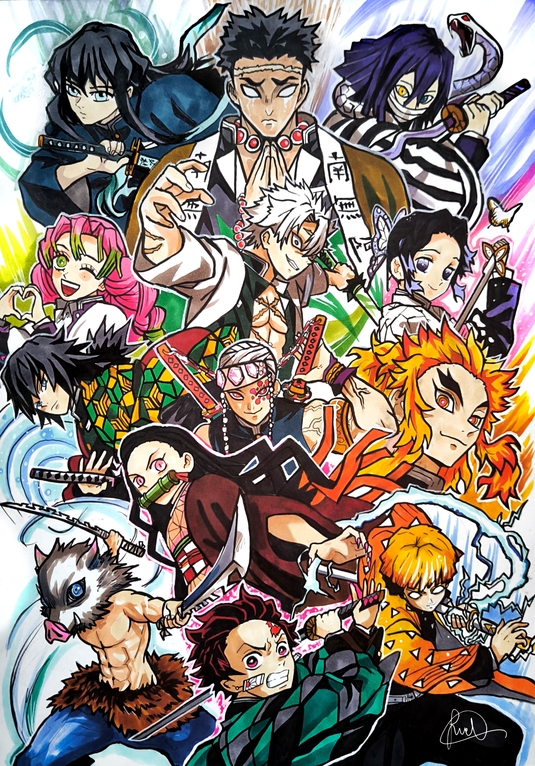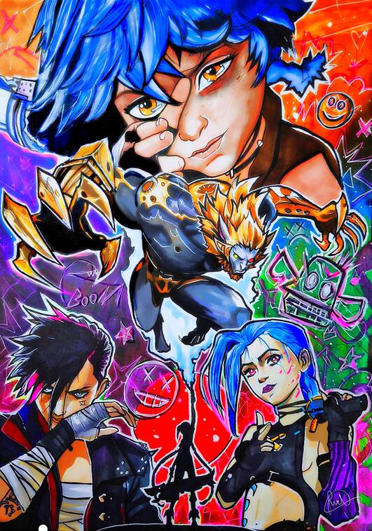 Dibujo tradicional aplicando rotuladores de alcohol, acuarela y bolígrafo de gran variedad de animes, películas y videojuegos.rnLlevo tanto originales como prints sobre un papel efecto metalizado que les da un toque mas premium.rnTambién llevo láminas que brillan en la oscuridad tras la aplicación a mano de un mineral natural que les concede dicha propiedad.
