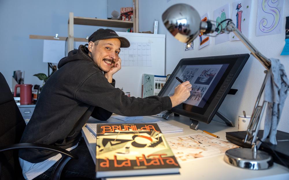 Genís Rigol es animador y artista de cómic, actualmente en residencia en La Maison des Auteurs (Angulema). Su proceso de animación combina destreza técnica y experimentación, dando lugar a historias impactantes, como el cortometraje Knockstrike, codirigido junto a Pau Anglada y Marc Torices, seleccionado en más de 30 festivales, entre ellos Sundance y Clermont-Ferrand. Genís también ha trabajado en numerosas producciones publicitarias y en series de televisión como Rick and Morty. Actualmente, se encuentra desarrollando un nuevo cortometraje, recientemente premiado por Movistar Plus. Brunilda en la Plata es su primera novela gráfica.
