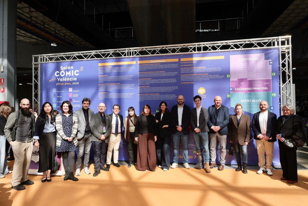 El respaldo institucional ha sido evidente. La directora general del Libro, del Cómic y de la lectura, Mª José Gálvez; el director general de Cultura, Miquel Nadal; Vicent Ripoll; la directora gerente de la Associació de Professionals de la Il.lustració Valenciana (APIV); Miriam Dàries, jefa del Servicio de Participación y Cultura; Cristina Zamorano, técnica del Servicio de Participación y Cultura; Jose Luis Moreno Ayuntamiento de Valencia. Concejal Acción Cultural, Patrimonio y Recursos Culturales; Francisco Teruel, Diputación de Valencia, diputado de Cultura; Nathalie Hirschsprung, Institut Français de Valencia; Pedro F. Medina, presidente de l’Associació d’editorials del País Valencià AEPV; Marc Senabre, secretario técnico de AEPV, y Mónica Payá, directora general d’Emprenedoria i Internacionalització. Juntos han recorrido el Salón para conocer de primera mano las novedades y actividades que van a tener lugar durante todo el fin de semana.
