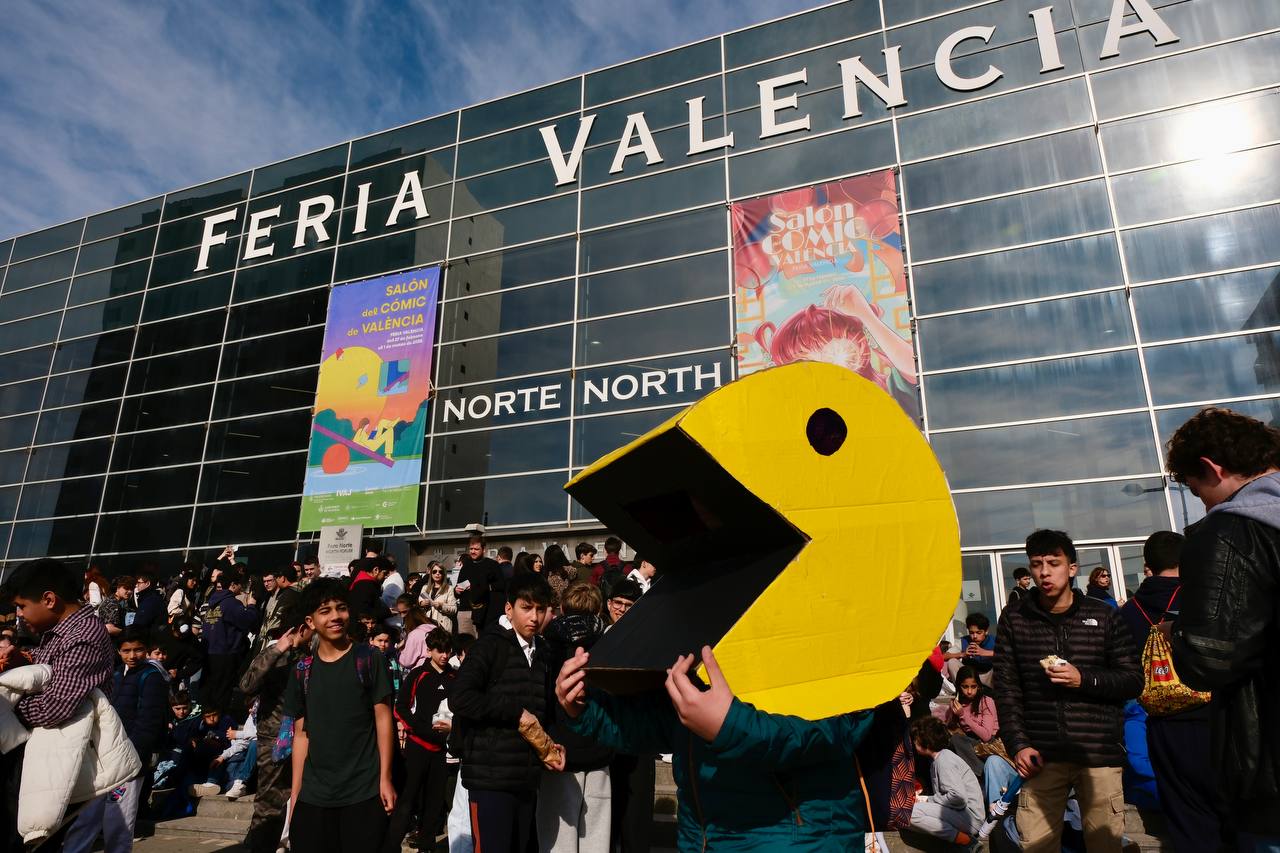 La primera jornada del Salón del Cómic de València ha estado marcada por una imagen muy clara: miles de jóvenes, estudiantes y grupos escolares han llenado el pabellón de Feria Valencia desde primera hora, mucho antes de la apertura del Salón las colas eran infinitas. Centros educativos llegados de distintos puntos de la Comunitat han convertido el Salón en una auténtica aula, donde el cómic sirve de herramienta para el aprendizaje y la creatividad.